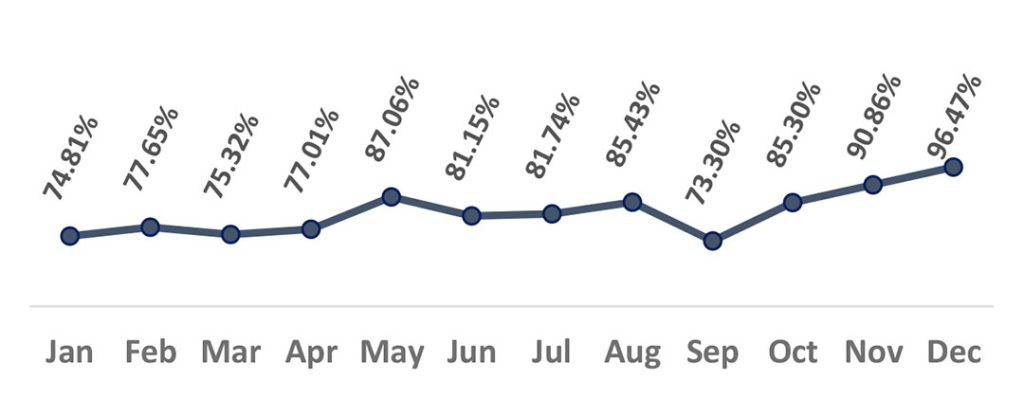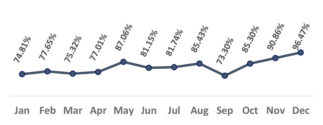2024 On-Time Deliveries – Rahco Rubber, Inc. – Goal: 90.0% On-Time